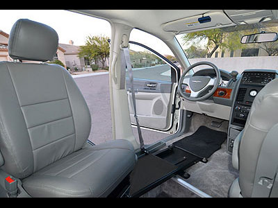 seat can be used in either case. No extra room is required for a ramp, and the side passenger doors are not blocked with a folding
