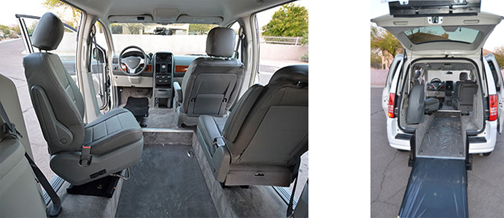 Fold-up ramps present a slightly raised ramp angle than in-floor ramps. In a side-entry conversion, only the drivers side entrance is accessible. In-floor ramps slide into a pocket underneath the vehicle's floor, and are only available for side-entry conversions.